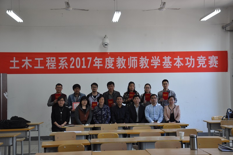 为加强教师队伍建设,夯实教师教学基本功,提升教师综合素质, 4月27日下午,土木工程系在4A106教室举办了“土木系2017年教师教学基本功竞赛”。 前期经由各教研室、实验室推荐,共有李玉峰、李浩、张云、姜岳、高俊...