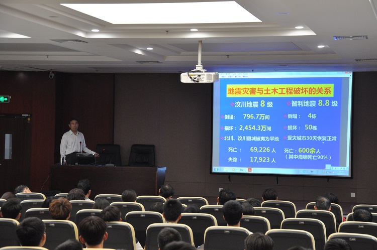 5月18日,我校土木系李自林教授关于《地震灾害及对策研究》的报告会在我校图书馆报告厅举行。报告会由教务处组织,科研科周炳臣科长主持,各系师生200余人参加了报告会。 李自林教授现为我校土木系系主任、天津大学博...