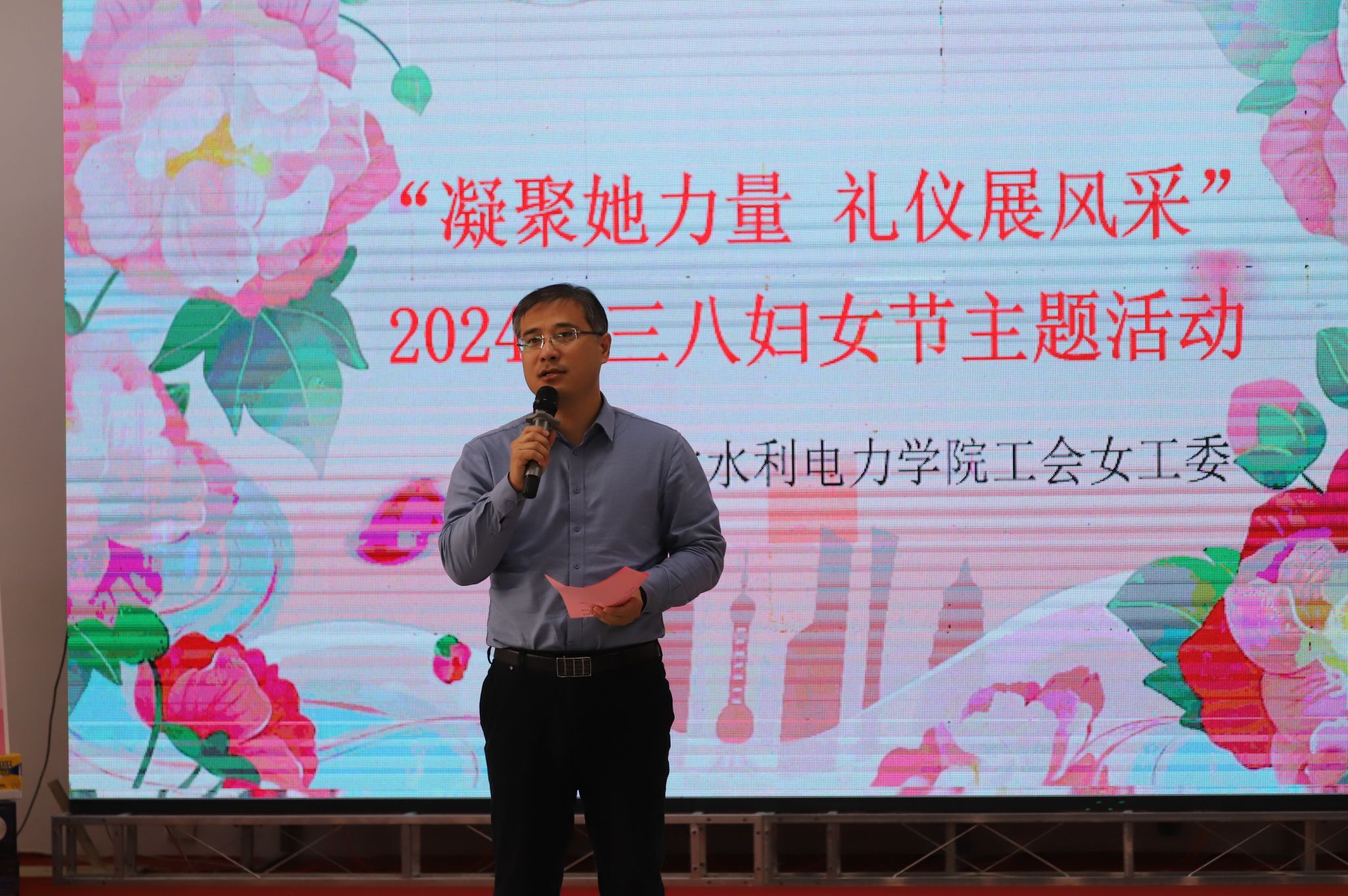 泱泱礼教,师身为范。在第114个国际妇女节来临之际,为进一步提升女教师的形象气质,展现优雅、自信的新时代女教师魅力,助力学校本科教学合格评估,3月6日,校工会女工委举办了以凝聚“她”力量,礼仪展风采为主题的女教师文明礼仪培训活动。副校长杨凯、工会常务副主席周保国出席本次活动,活动由水利工程系党总支副书记史琳、辅导员卢伯阳主持,工会董晓老师担任主讲,全校女教职工参加了培训。杨凯首先代表学校向全校女教职工致以节日的祝福,...