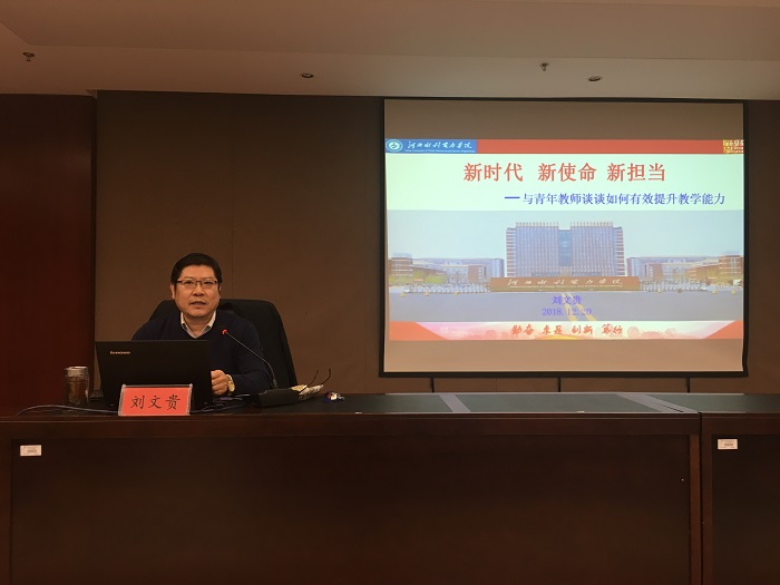 12月20日下午,在弘文守正楼9楼报告厅,我校青年教师教学发展培训班第七讲开讲,教务处处长刘文贵教授作了题为《新时代 新使命 新担当——与青年教师谈谈如何有效提升教学能力》的精彩报告。 刘处长以“仰望星空与脚...
