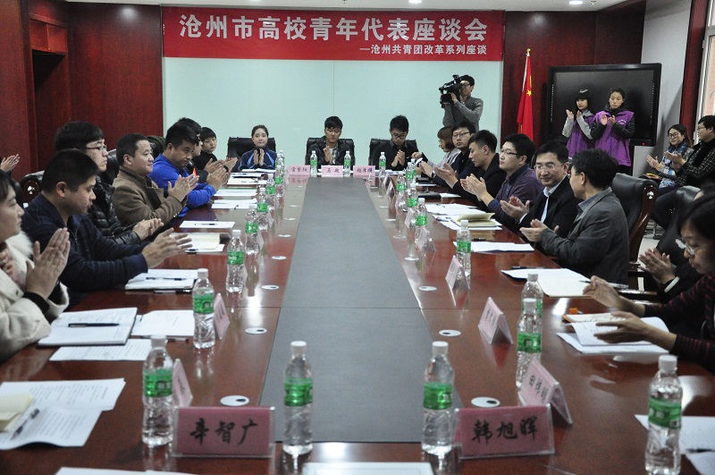 11月17日下午,由共青团沧州市委员会组织的“沧州市高校青年代表座谈会”在我校召开,团市委青年研究室、办公室、组织部、工农青年部、学校部负责同志,驻沧高校团委、学生处、就业办负责同志、青年学生代表,共计40...