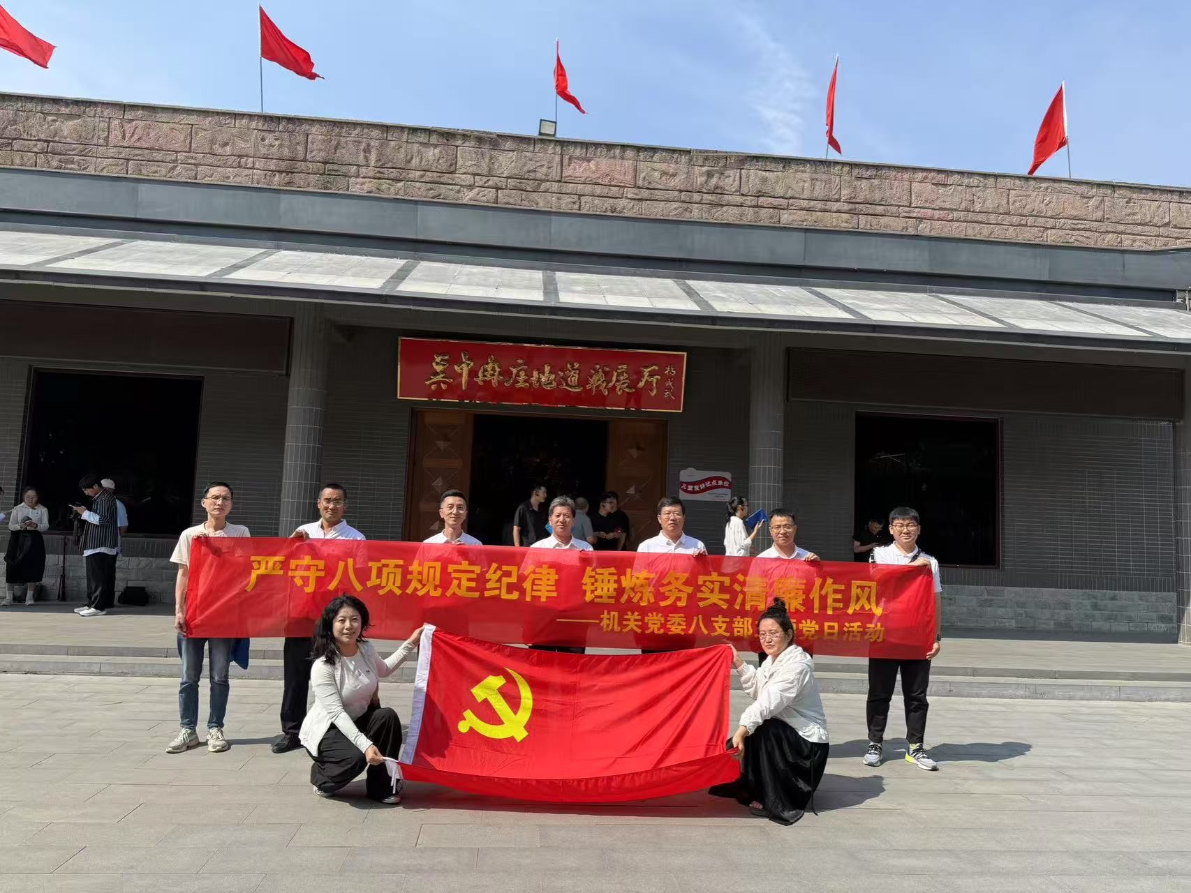 为深入贯彻中央八项规定精神学习教育,加强廉洁文化建设,6月20日,机关党委八支部组织全体党员赴河北清苑冉庄地道战遗址,开展“严守八项规定纪律,锤炼务实清廉作风”主题党日活动。在冉庄地道战纪念馆前,全体党员面向党旗重温入党誓词。随后,通过参观纪念馆和地道遗址,深入了解抗战时期冉庄军民在中国共产党领导下,严明纪律,艰苦奋斗,深入开展群众路线,在极端困难条件下进行斗争的英勇事迹。参观中,党员们重点体悟了革命先辈“...