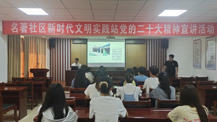 为进一步推动主题教育落地落实,6月8日,我院党的二十大精神基层宣讲员、电气自动化系郭佳琦同学走进名著社区新时代文明实践站,面向社区开展党的二十大精神宣讲活动。