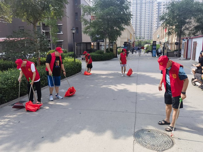 活动中,各位党员教师身穿红色志愿者服装,参与社区环境卫生治理工作。大家一起清理了凤凰城A区道路周边的果皮纸屑、烟头、枯枝残叶等垃圾,随后对小区内停放不规范的非机动车车辆进行重新摆放,保证了小区内道路通畅和交通安全。党员教师志愿者在炎热天气下,不怕脏、不怕累,奋力争先,用实际行动为社区环境改善贡献了自己的力量。