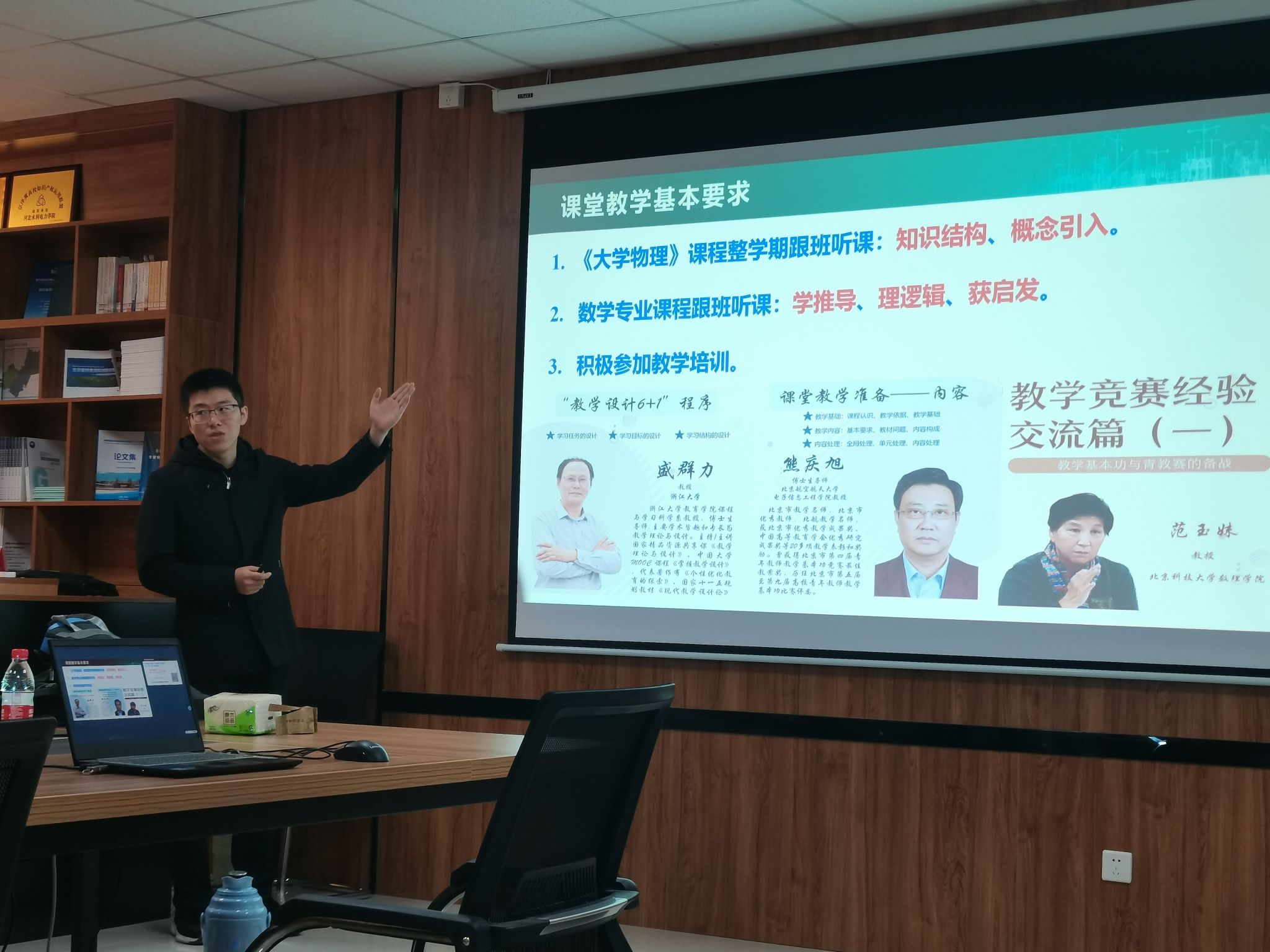 唐翰昭老师以日常教学管理为主题,分享了石家庄铁道大学数理系的课堂教学质量要求,课程教学方法、考核评价以及教研活动开展情况;张丽丽老师从青教赛备赛的基本要素、青教赛准备工作及注意事项、青教赛示范课三方面进行了经验分享,并对基础部青年教师教学展示进行点评与指导;杜明辉老师分享了物理实验教学、科研、指导学生竞赛等方面的先进经验和新思路,并就如何拓展实验项目、引进新的实验技术以及与企业合作等方面提出了建议。基础部老师们则就教学中存在的问题踊跃发言提问,整个交流研讨过程气氛热烈。