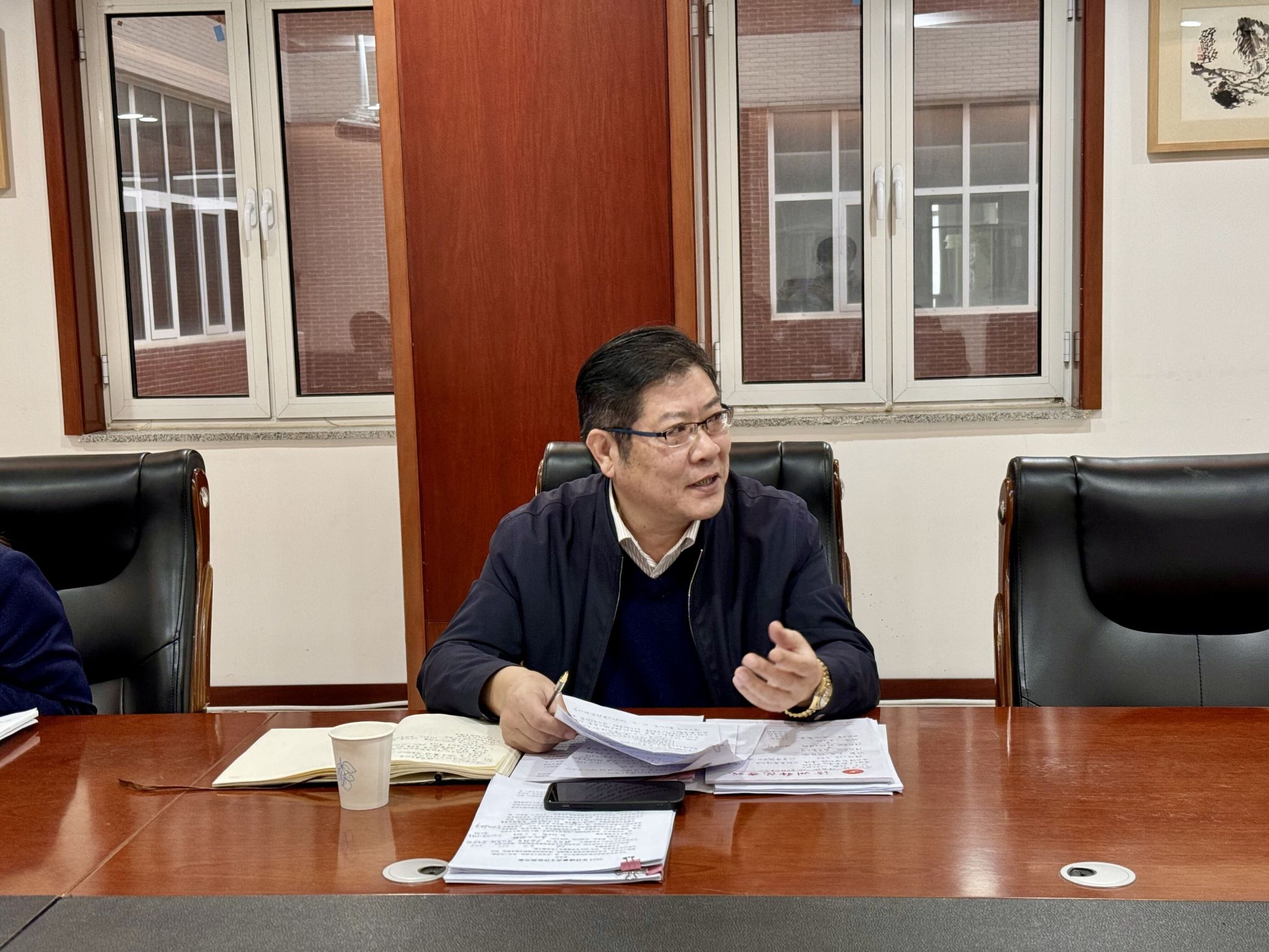 为全面落实立德树人根本任务,扎实推进我校“课程思政”建设工作,12月12日,我校在弘文守正楼11楼党委会议室召开课程思政工作交流研讨会,教务处、人事处、高教研究中心、马克思主义学院和各系部负责人参加会议并汇报了课程思政工作开展情况,党委书记张效松、副校长王建明出席会议。