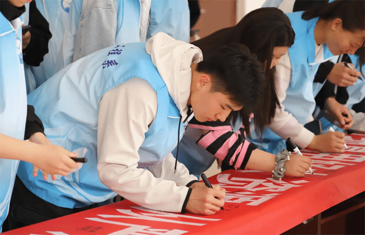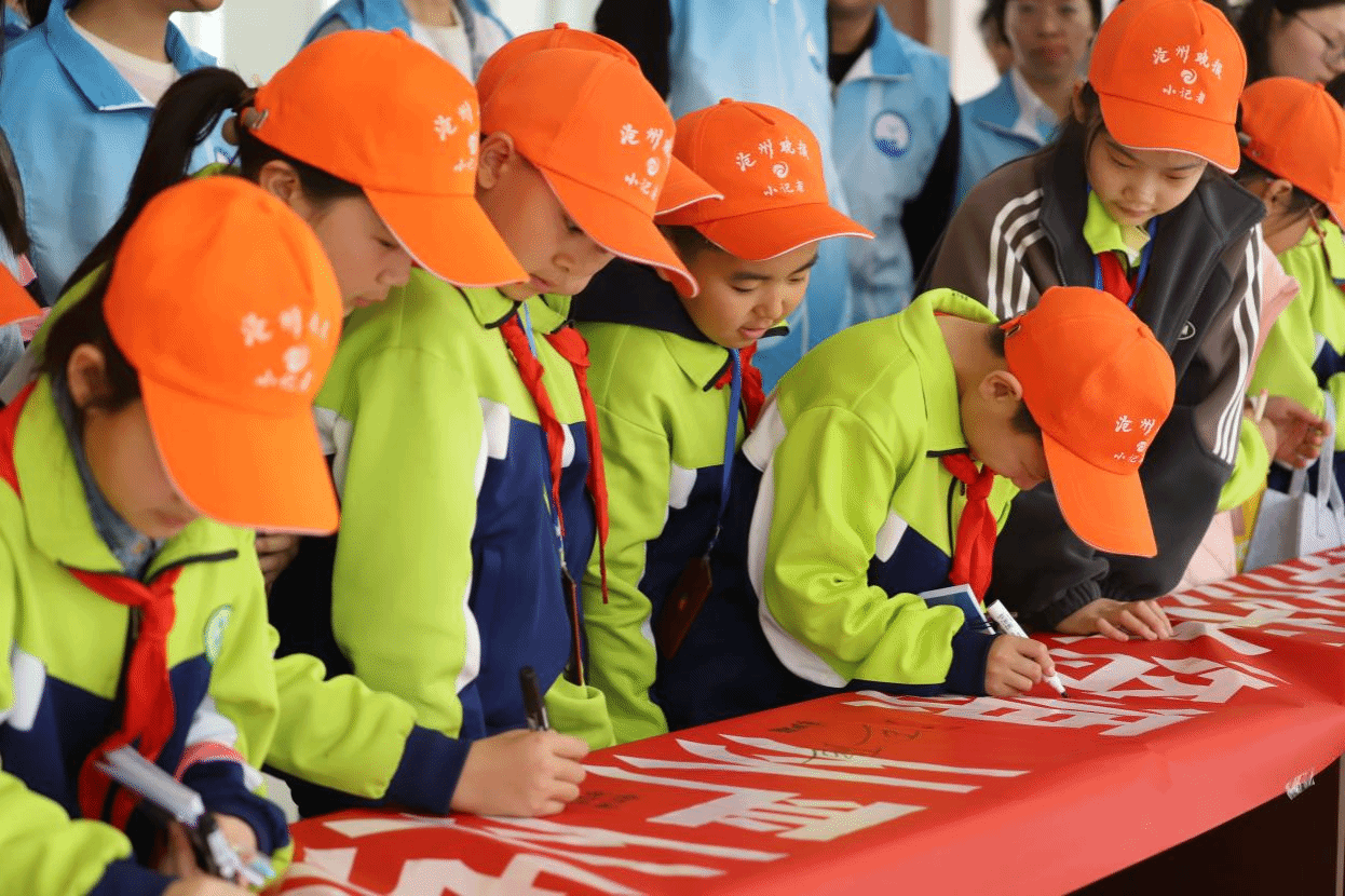 在活动的最后环节,大学生和小学生们共同在条幅上签下了自己的名字,每一个名字都是一份承诺,代表着他们对保护水资源的坚定决心,用实际行动表达了对节水环保的支持,签完名后,两校师生合影留念,记录下这难忘的时刻。