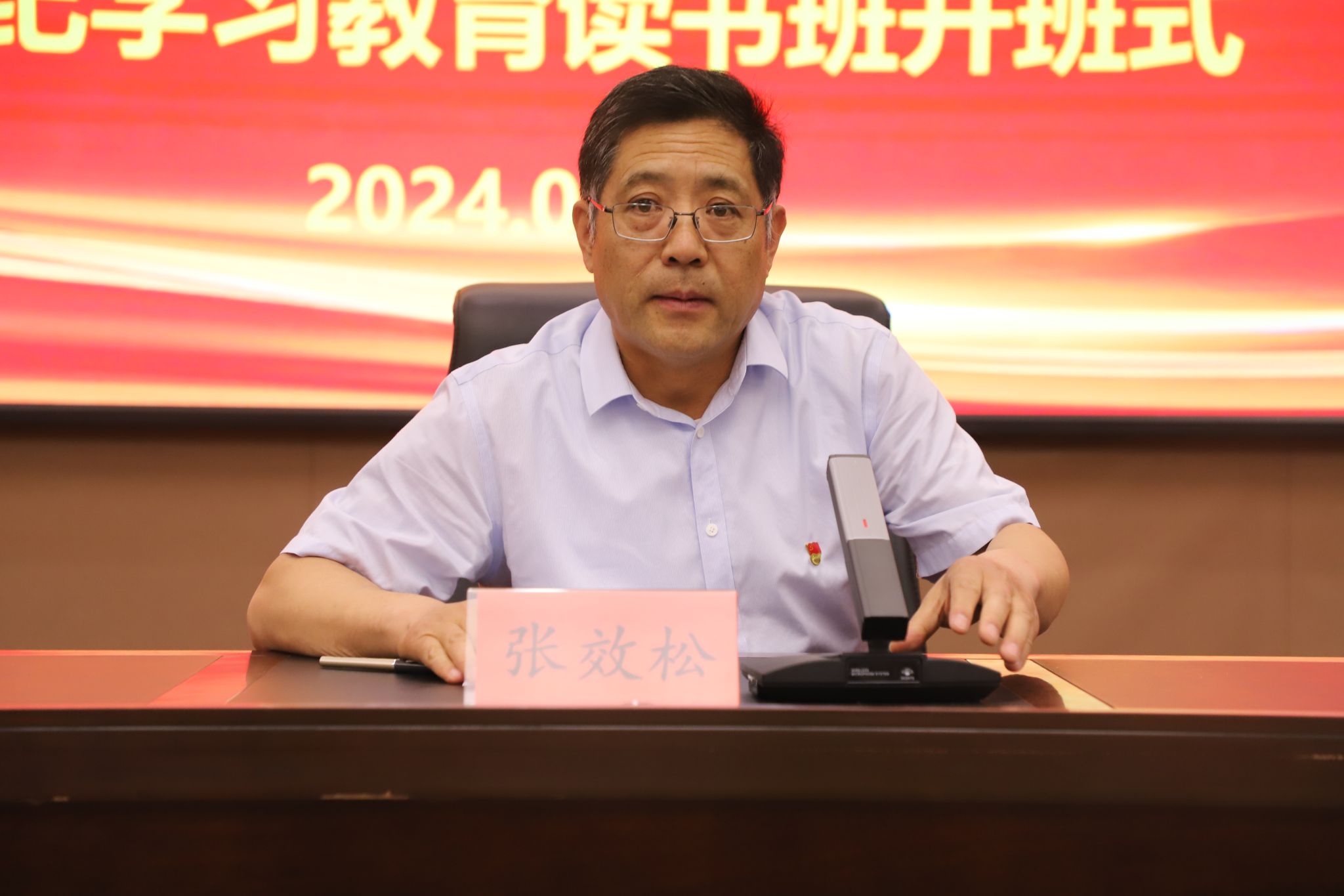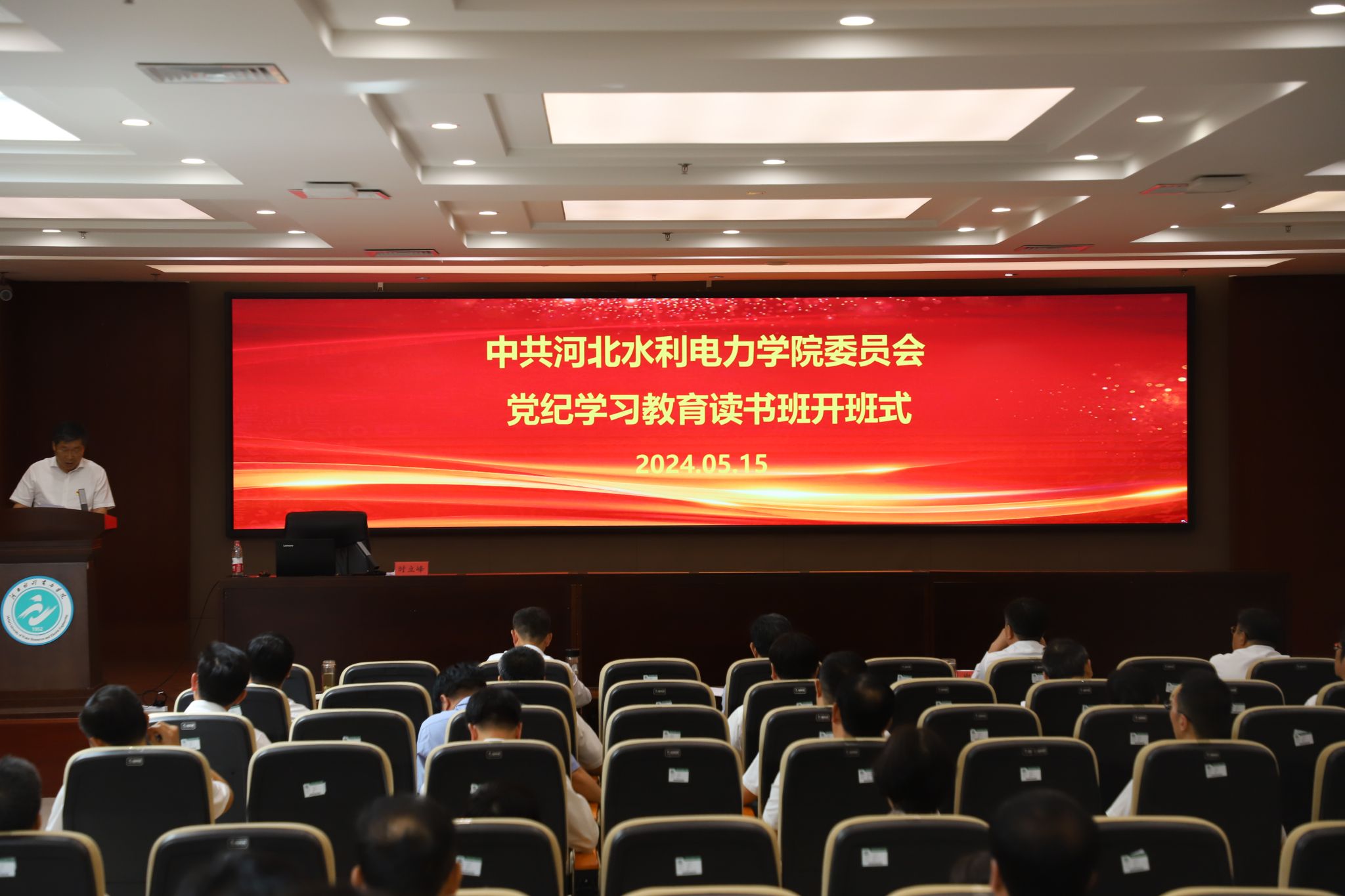 5月15日,我校处级以上领导干部党纪学习教育读书班在弘文守正楼报告厅开班,党委书记张效松出席开班式并讲话,校领导班子成员出席,副校长于振海主持开班式。