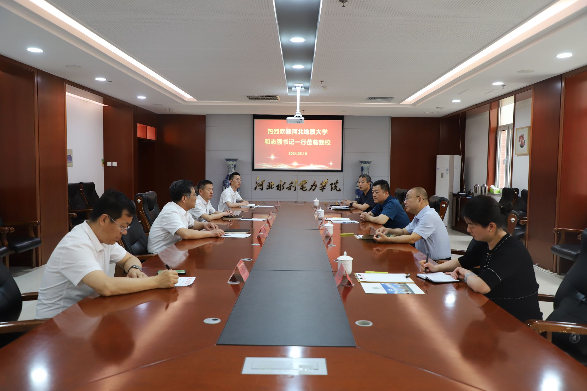 5月16日,河北地质大学党委书记和志强、副校长都沁军一行来我校调研交流。党委书记张效松,党委副书记、校长王滨与和志强一行于弘文守正楼党委会议室座谈交流。