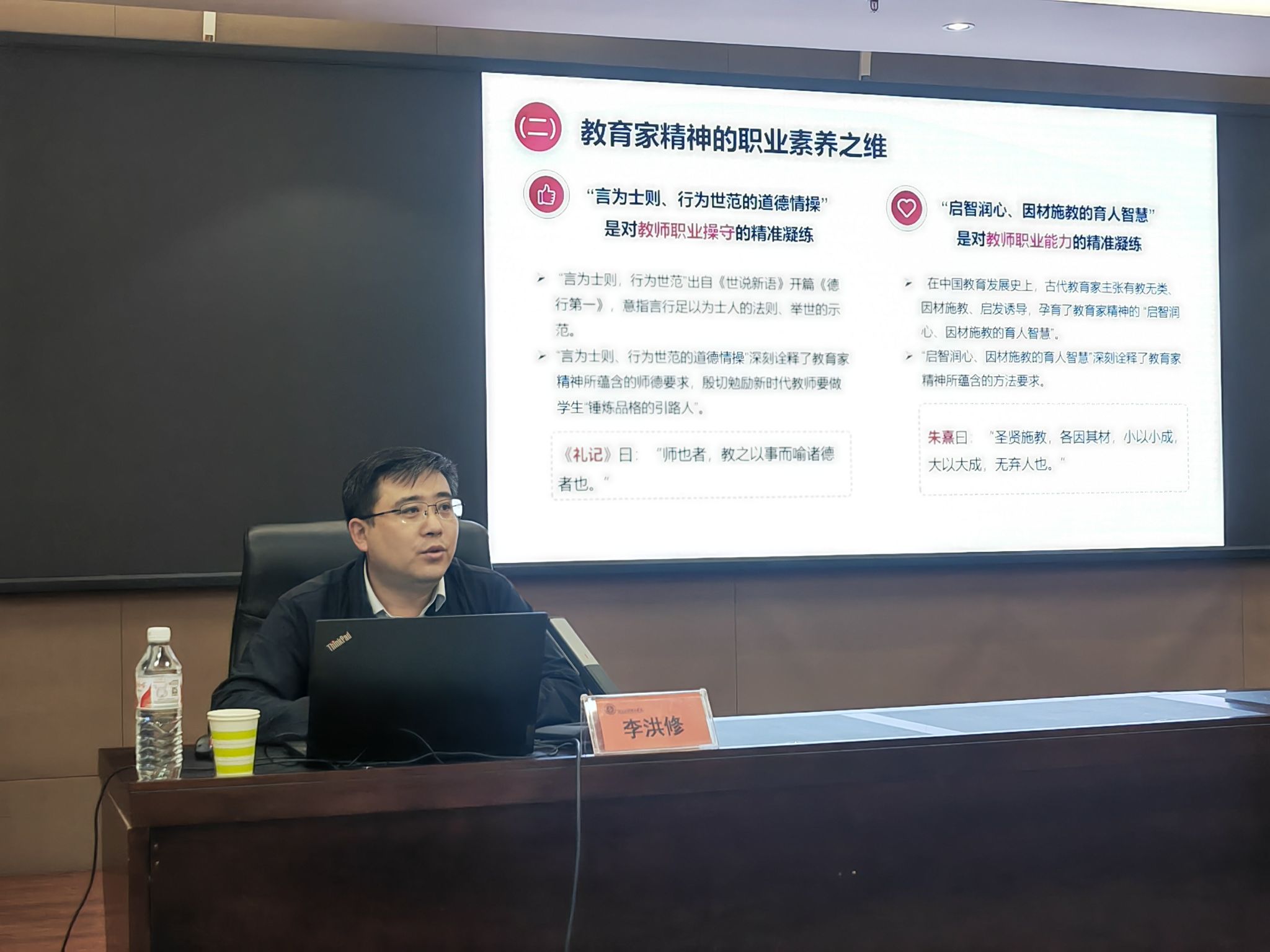 为进一步加强和推进师德师风建设,弘扬践行教育家精神,激励广大教师积极投身教育事业,争做新时代大先生。5月16日下午,我校在弘文守正楼9楼报告厅举办了主题为“弘扬教育家精神 做新时代的大先生”的师德讲堂活动,邀请天津师范大学李洪修教授作为主讲嘉宾。副校长崔立功出席并主持活动。