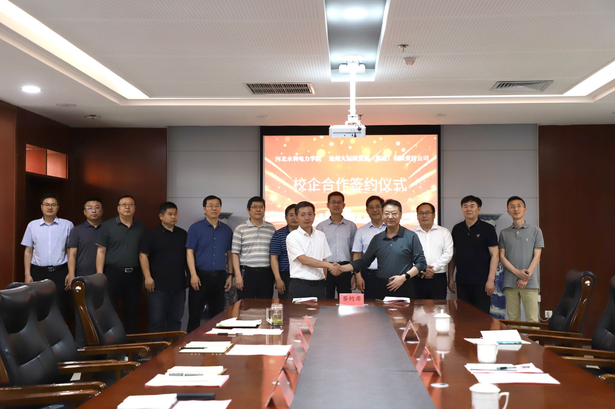 5月28日,我校与沧州大运河发展(集团)有限责任公司在弘文守正楼1102会议室举行了校企合作签约仪式。沧州大运河集团党委书记、董事长赵重阳,副总经理张阁,办公室主任田培林;学校党委书记张效松,党委副书记、校长王滨,副校长崔立功,副校长王建明出席了签约仪式。签约仪式由副校长王建明主持。