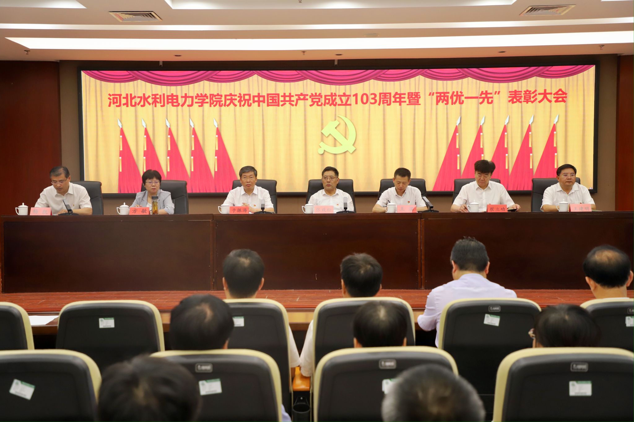 6月28日上午,我校庆祝中国共产党成立103周年暨“两优一先”表彰大会在弘文守正楼九楼报告厅隆重举行,学校领导班子全体成员出席会议,正处级干部、受表彰人员和党员代表参加会议。会议由党委副书记、校长王滨主持。