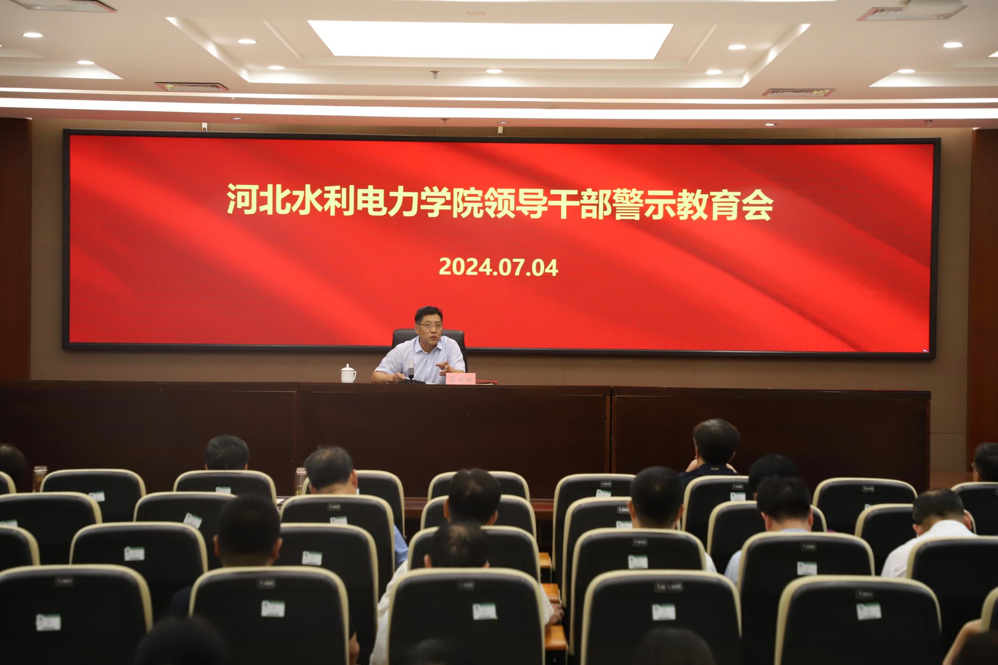 7月4日,我校在弘文守正楼9楼报告厅召开领导干部警示教育会。党委书记张效松主持会议并讲授党纪教育专题党课,校领导班子成员、全体中层干部及马克思主义学院全体教师参加会议。