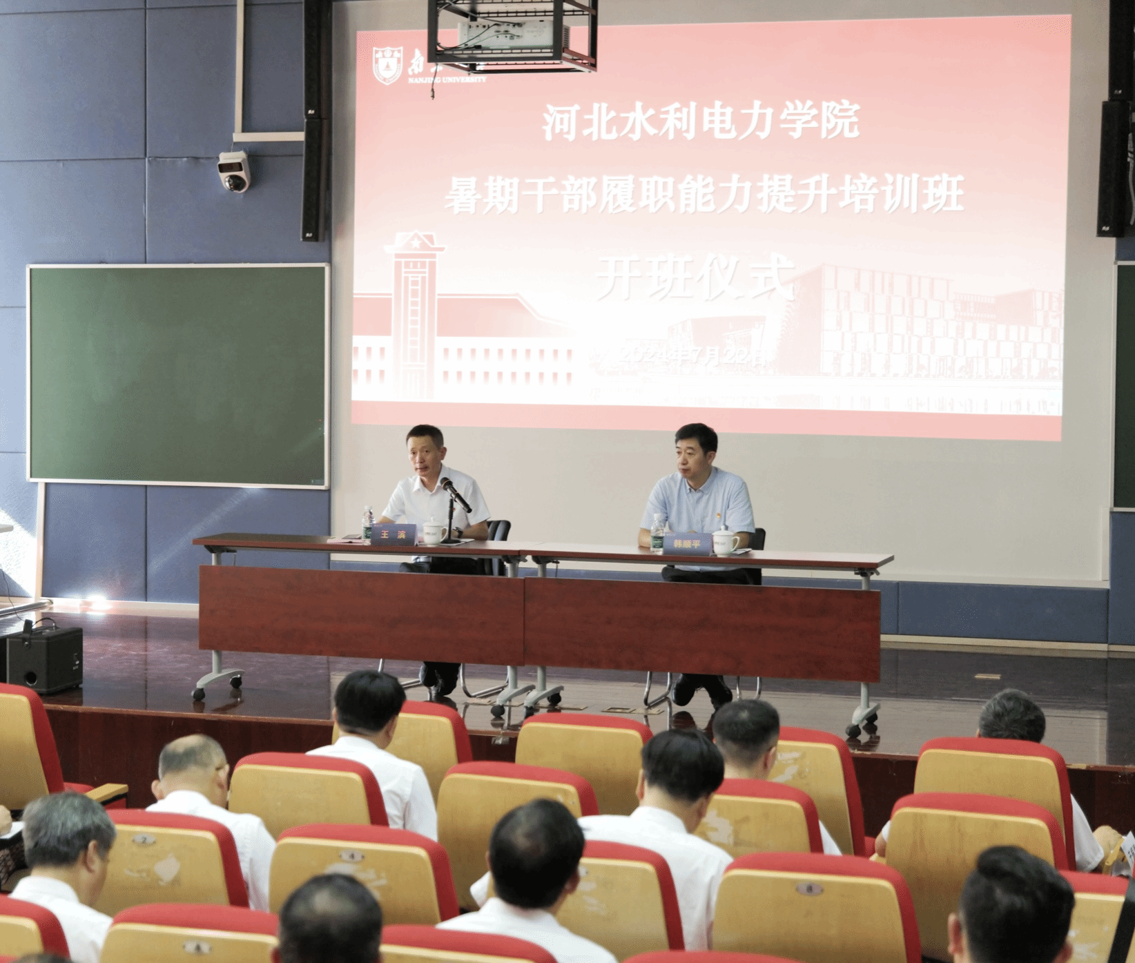 7月22日-26日,8868·电子(中国)官方网站2024年暑期干部履职能力提升培训班在南京大学成功举办。党委副书记、校长王滨在22日的开班仪式上作动员讲话。南京大学终身教育学院院长韩顺平、我校副校长于振海、杨凯出席开班仪式。王滨指出,此次培训班目的是帮助大家拓宽视野、更新观念、提升能力,希望全体学员从思想上高度重视,行动上高度自觉,从端正态度、加强交流、学用结合、严守纪律四个方面对学员提出了要求。