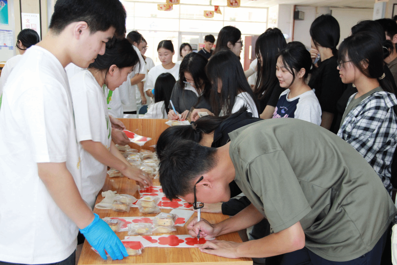 学生现场领取月饼并留下祝福便签