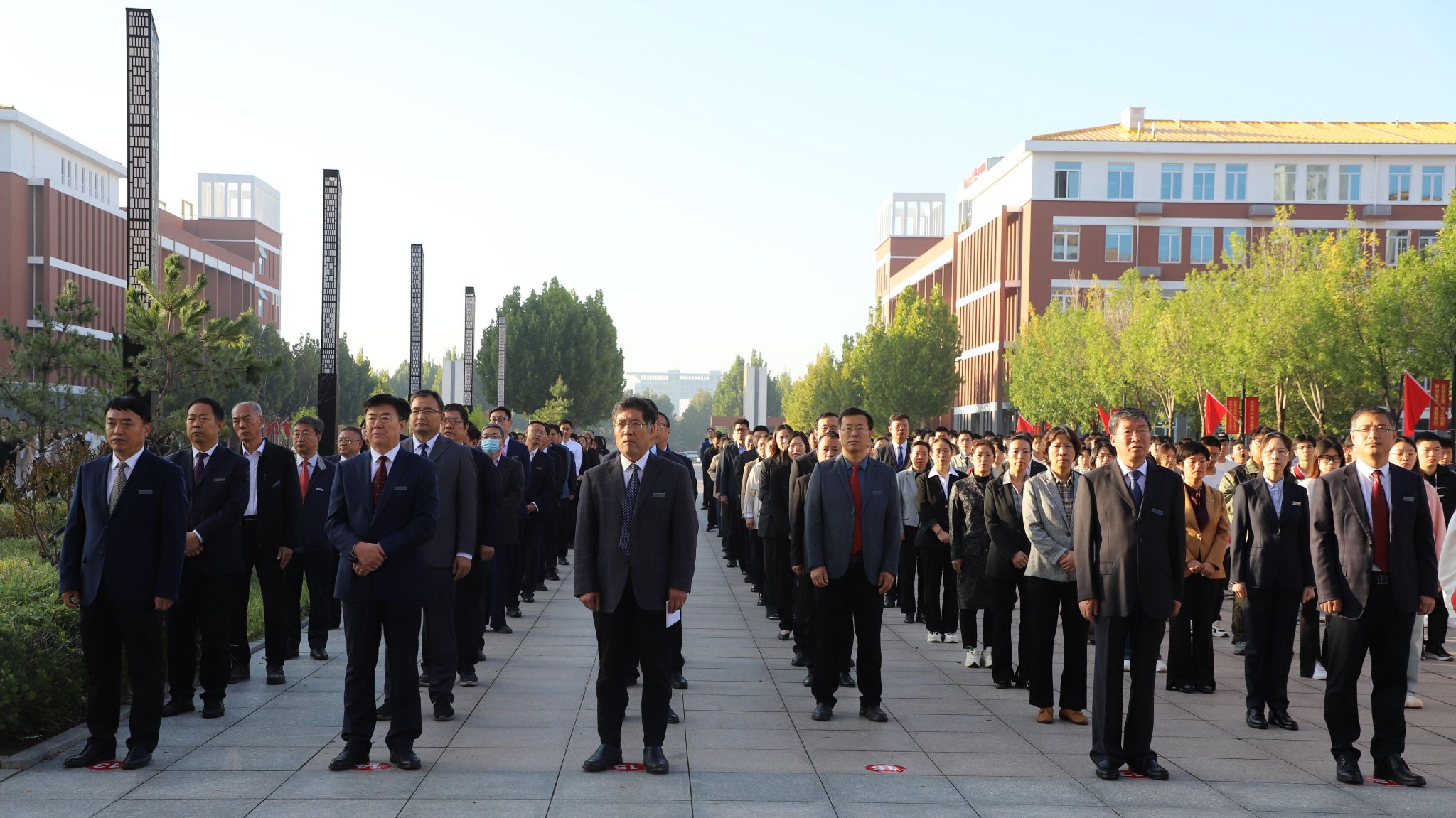 秋风猎猎展红旗,晨曦煌煌贺华诞。为庆祝新中国成立75周年,进一步弘扬爱国主义精神,增强师生爱国意识和民族自豪感,10月1日上午,我校隆重举行庆祝新中国成立75周年升旗仪式。党委书记张效松、校长王滨、党委副书记崔立功、副校长于振海、副校长杨凯及师生代表共计1000余人参加了升旗仪式。升旗仪式由校长王滨主持。