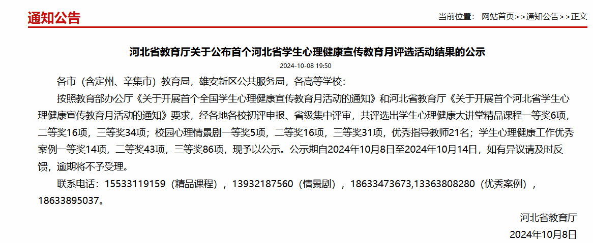 喜报!我校在河北省学生心理健康宣传教育月评选活动中喜获佳绩