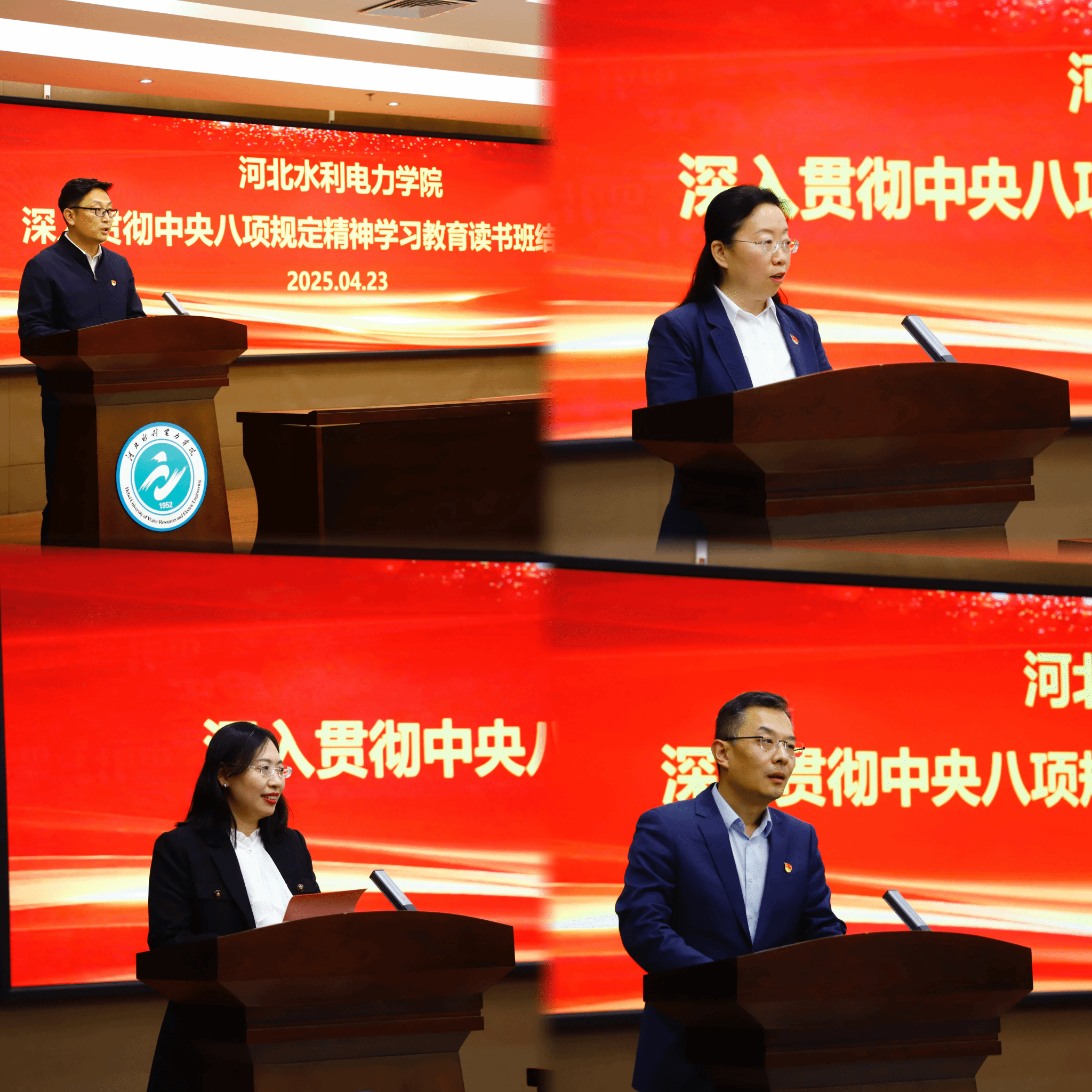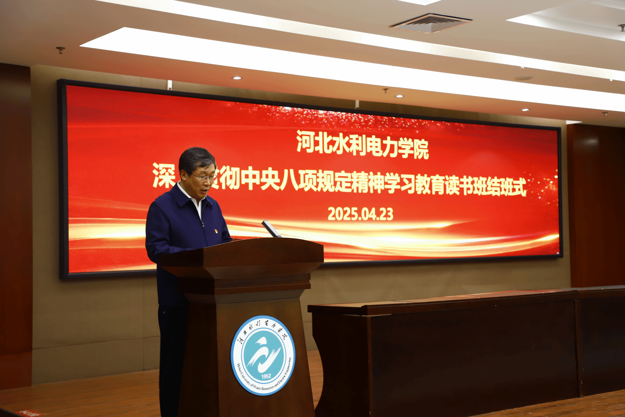 4月23日下午,我校深入贯彻中央八项规定精神学习教育读书班结班式在弘文守正楼报告厅举行,党委书记张效松作总结讲话,副校长于振海主持结班式。