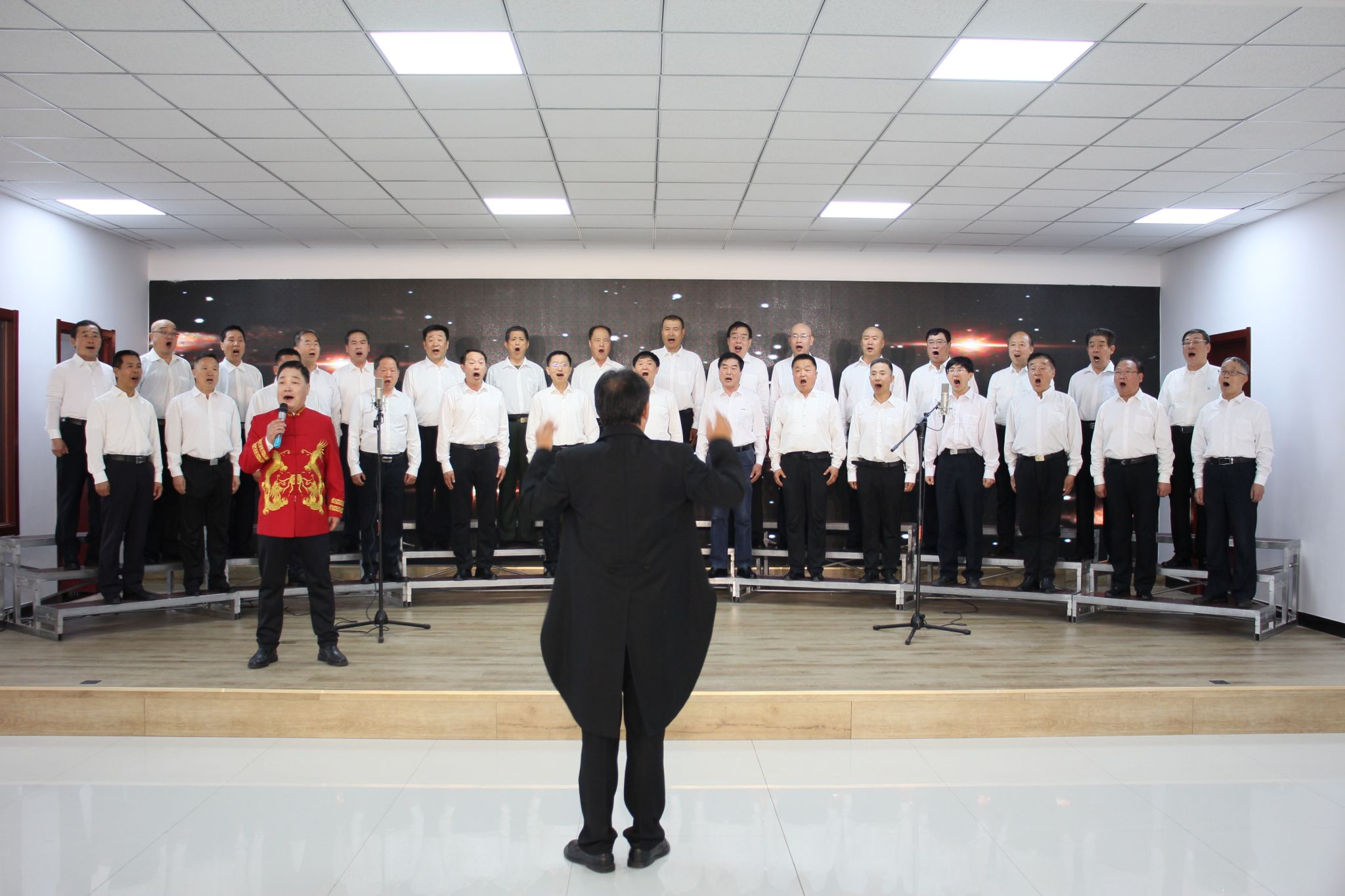 音乐会在我市著名指挥葛明栋老师的带领下,以两个合唱团联袂演唱《同一首歌》的方式拉开序幕。随后,爱乐合唱团深情演绎了《今天是你的生日,中国》和《在灿烂阳光下》,歌声时而高亢激昂、时而宛转悠扬,充分表达了中华儿女对祖国母亲的无限热爱。