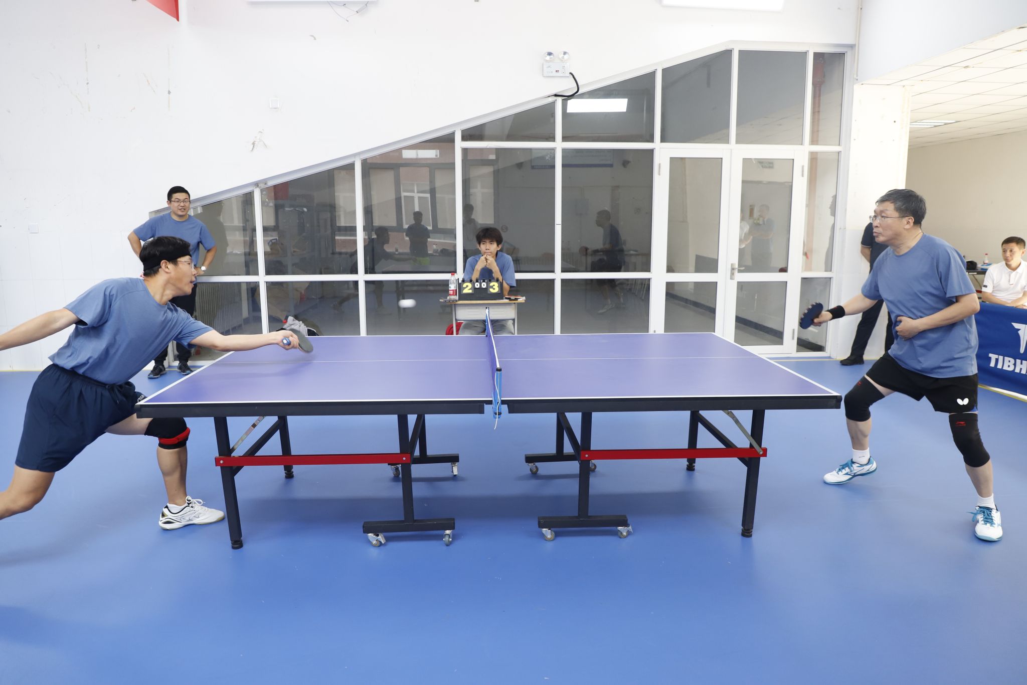 为丰富教职工文体生活,增强团队凝聚力,5月29日,由校工会主办、教职工乒乓球协会承办的“河北银行杯”教职工乒乓球团体比赛在启智楼活动中心火热开赛。校领导张效松、王滨、崔立功、于振海、杨凯、董志良、鲁增秋到场参加,张效松为开幕式致辞,比赛由董志良和鲁增秋开球。