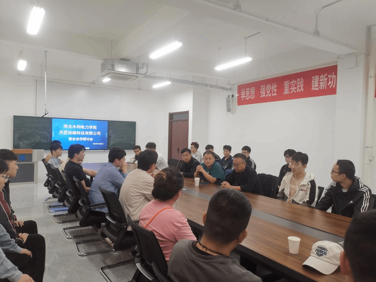 校企双方在本校区会议室召开合作研讨会。崔炳德对天津天匠动画科技有限公司一行人的到来表示热烈欢迎。他强调,天匠作为与数字媒体技术专业有高度契合度的对口企业,在本次数字媒体技术综合实践的合作中给予了学校很大帮助,在与公司洽谈的过程中,学校感受到了公司的诚意和对人才的渴望。关于未来的实训工作,崔炳德表示,希望校企双方能够继续强化在人才培养、专业建设、实践锻炼、就业招聘、文化交流等方面的合作。随后,于占洋表达了此次到访我校的激动心情,对此行的主要目的及公司基本情况、业务涵盖范围、校企合作规划等问题进行了简要说明,并表达了对深化双方合作的诚挚愿望。校企双方沟通融洽,就产学研合作等方面达成共识。