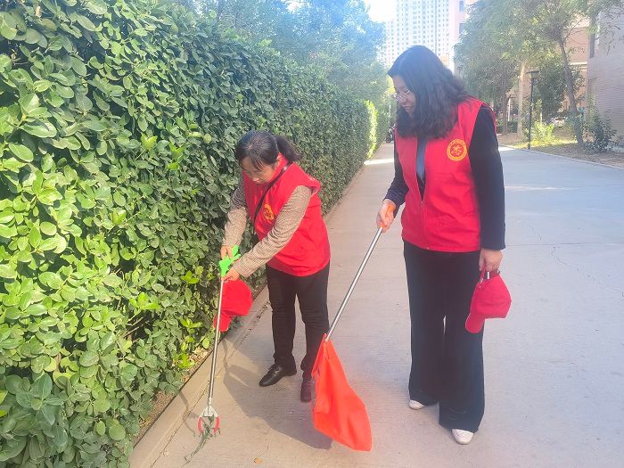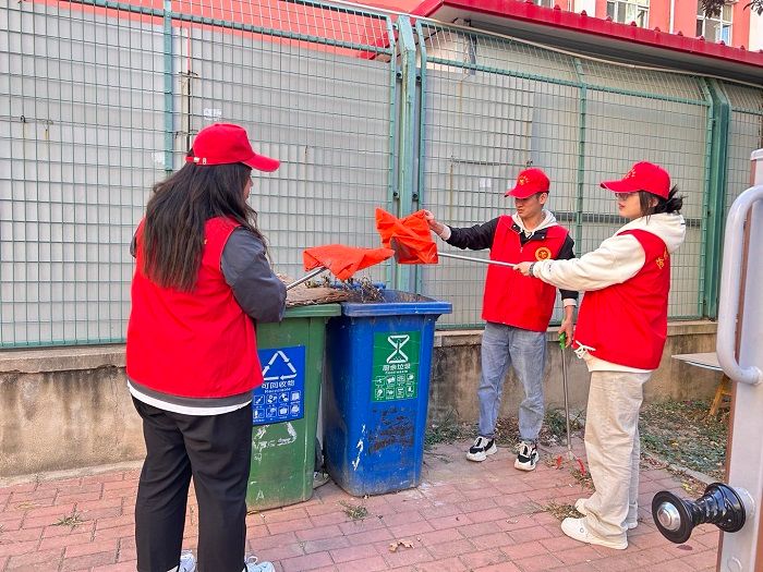 师生党员以高涨的热情积极参与本次活动,携带扫帚、小铲、垃圾夹等工具认真打扫,并弯腰拾捡道路上的废弃物、纸屑烟头等各种垃圾,放入随身携带的垃圾袋中。同时,他们对绿化带、花坛等卫生死角长期沉积的杂草、垃圾也进行了全方位的清理,让每个角落都焕然一新。他们还互相帮助摆放小区内的电车,并且主动向居民宣传环保知识,提醒大家养不乱扔垃圾的好习惯,营造良好的社区环境。经贸系师生劳动的身影成为了城市中一道靓丽的风景线,此次创城主题党日活动展现了师生的责任担当,践行了志愿服务精神,为沧州创建文明城市贡献了力量。此次活动得到了社区居民的积极响应和支持不少居民纷纷表达了他们对党员志愿者的敬佩和感谢之情。