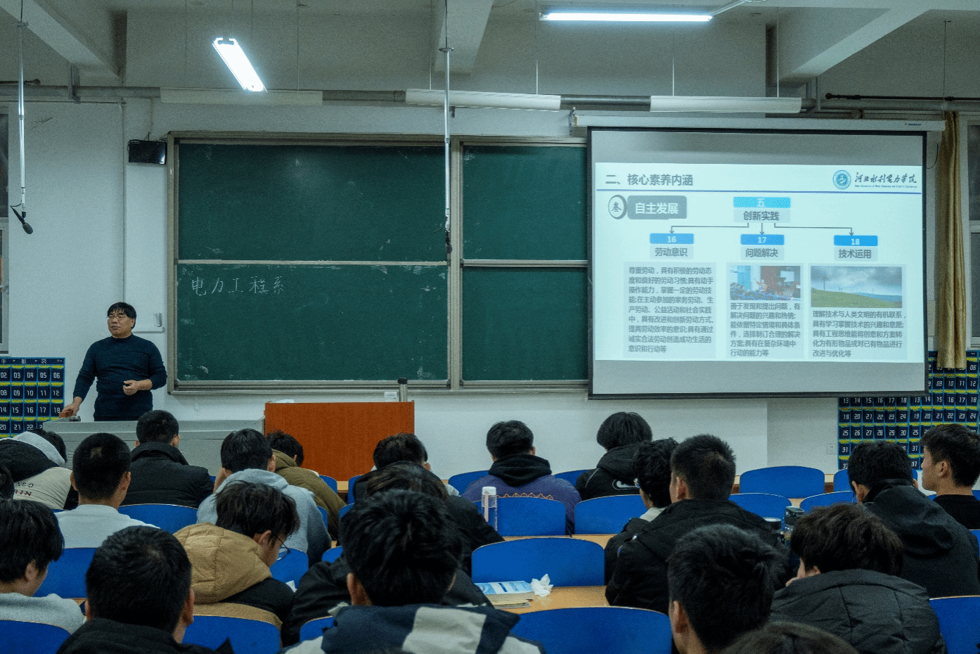 为提高大学生的综合素质,培养创新能力,为学生的成长和发展提供有力的支持和指导,12月13日下午,电力工程系主任李文才于创新楼101教室举办主题为“当代大学生发展的核心素养”的讲座活动。