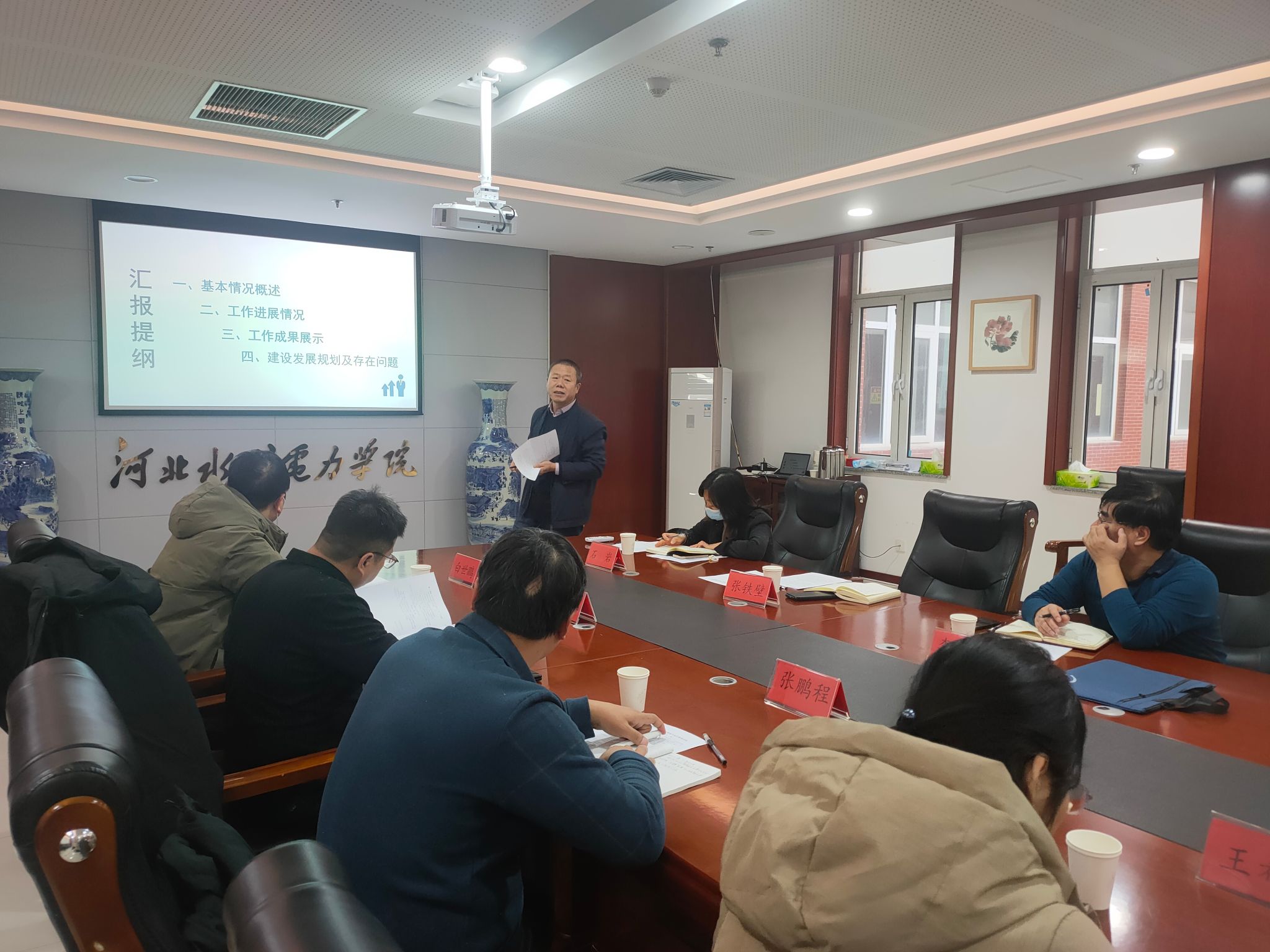12月27日上午,河北省工业机械手控制与可靠性技术创新中心在弘文守正楼第一会议室举行管理委员会扩大会议。我校党委书记张效松、教务处处长刘文贵、机械工程系主任张铁壁、电力工程系主任李文才、电气自动化系主任唐勇、科技处任董普老师及其他中心成员参加本次会议。会议由机械系副主任石岩主持。