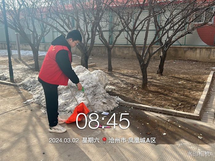 为助力沧州市创建全国文明城市,营造良好的生活环境,大力弘扬“奉献、有爱、互助、进步”的志愿服务精神,3月2日,电力工程系志愿者协会组织20余名同学,到我校包联社区凤凰城A区开展了志愿服务活动。