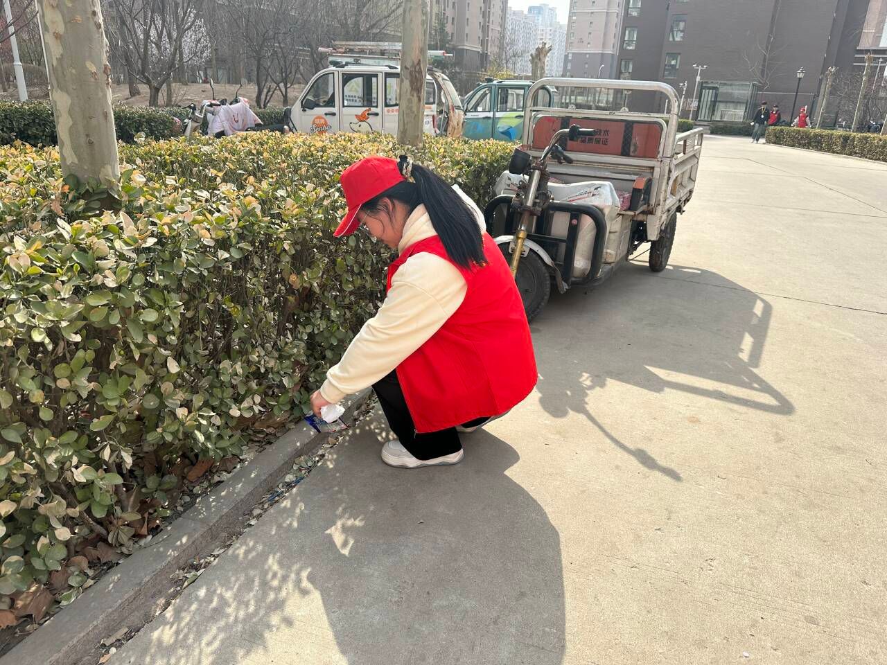 活动过程中,同学们共同清理了小区地面上的垃圾,从路面到草丛进行了全方面清理,做到不留死角,不落一处,铲除了楼道内的小广告,使墙面焕然一新,将未停放在非机动车位内的车辆进行了规整摆放,进一步美化了小区环境,改善了小区卫生情况,方便了居民出行生活。最后志愿者们向社区居民发放了《沧州市创建全国文明城市应知应会》宣传材料,并向他们讲解了创城的重要意义,引导社区居民共同参与精神文明城市创建活动,为沧州市创城工作添砖加瓦。