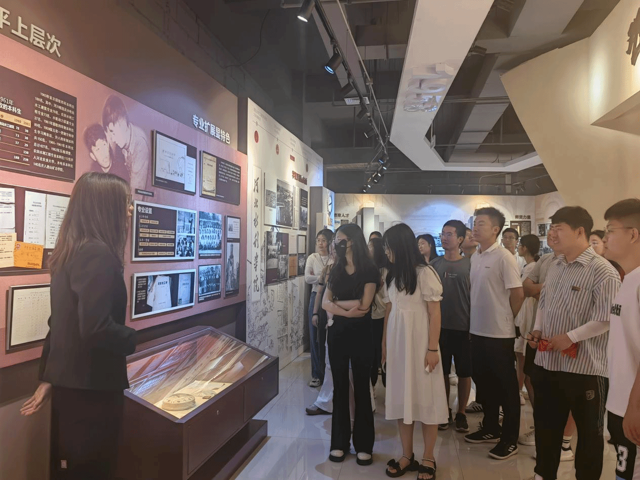 在讲解员的深入讲解下,电气自动化系师生沿着学校70年发展的时间轴,系统回顾了学校的历史沿革、文化脉络、红色基因和办学成就,让学生身临其境般感受到了一代代水院人为学校改革发展而艰苦奋斗、自强不息、开拓进取的非凡历程,深刻体会到了学校始终扎根中国大地办教育,与时代和民族风雨同舟的气度和情怀。