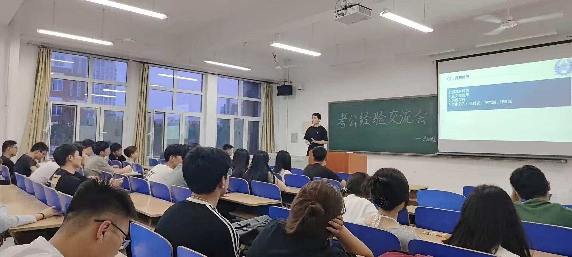 为帮助同学们深入了解公务员考试,明确备考方向,掌握备考技巧,提升备考效率,电气自动化系于6月19日在创新楼B203举办考公考编经验交流会。交流会由陈硕老师主持,优秀毕业生代表主讲,百余名同学参加讲座。