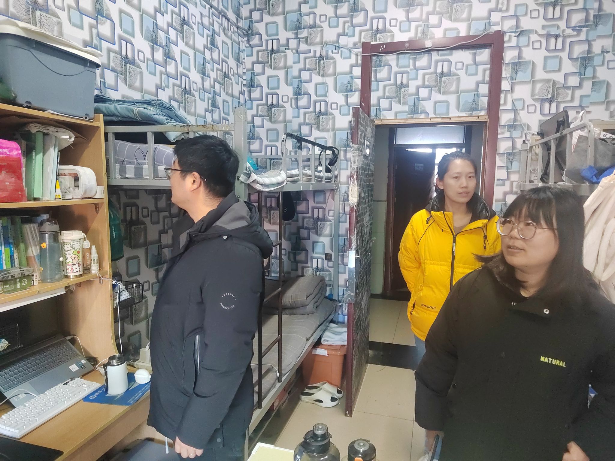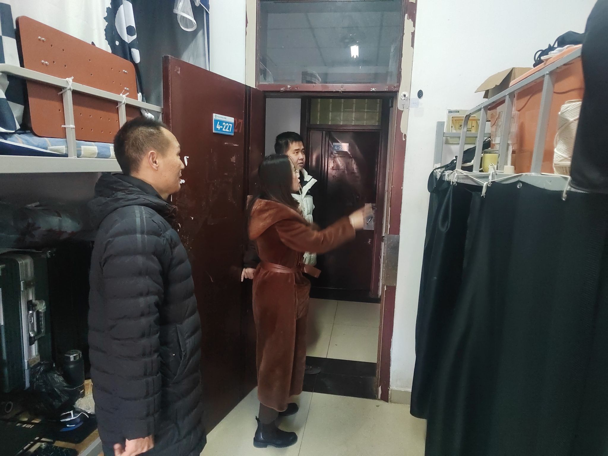 随后,老师们走进学生公寓,重点围绕学生返校状态调整、用电安全、消防安全以及卫生情况等方面进行检查。老师们逐一走访宿舍,与在宿舍的学生亲切交流,询问假期生活以及新学期准备情况,叮嘱学生们要做好学期规划,不荒废学业,同时要严格遵守学校宿舍管理规定,按时归寝,增强安全意识,注意防火防盗。