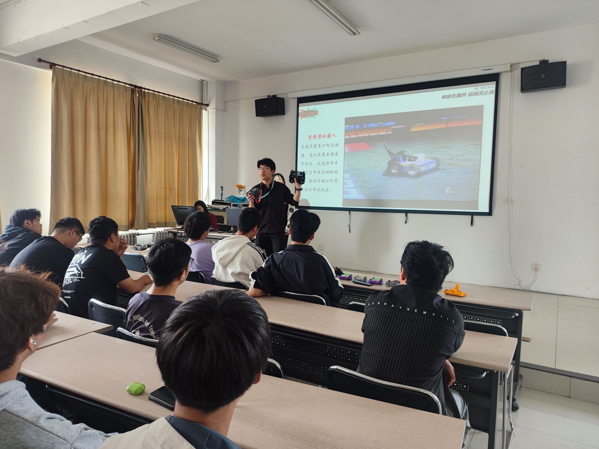 活动特邀我校大学生创新创业孵化园特色项目“水青科创格斗机器人”团队担任主讲人,该团队已注册科技公司,累计斩获国家级奖项20余项,省级奖项10余项,展现了突出的创新实力。本次活动共设置四个环节:专业科普讲座,系统讲解格斗机器人发展历程、技术原理及竞赛情况;实物展示环节,现场演示1.5kg和300g格斗机器人,涵盖转鼓、横转、竖转等多种类型;互动对战体验,学生亲手操纵机器人,零距离感受机器人竞技魅力;工作室实地参观,全面展示从设计、加工、组装到成品展示的全流程。本次活动通过理论与实践相结合的互动形式,有效激发了学生的参与积极性,极大培养了学生的创新创业热情。