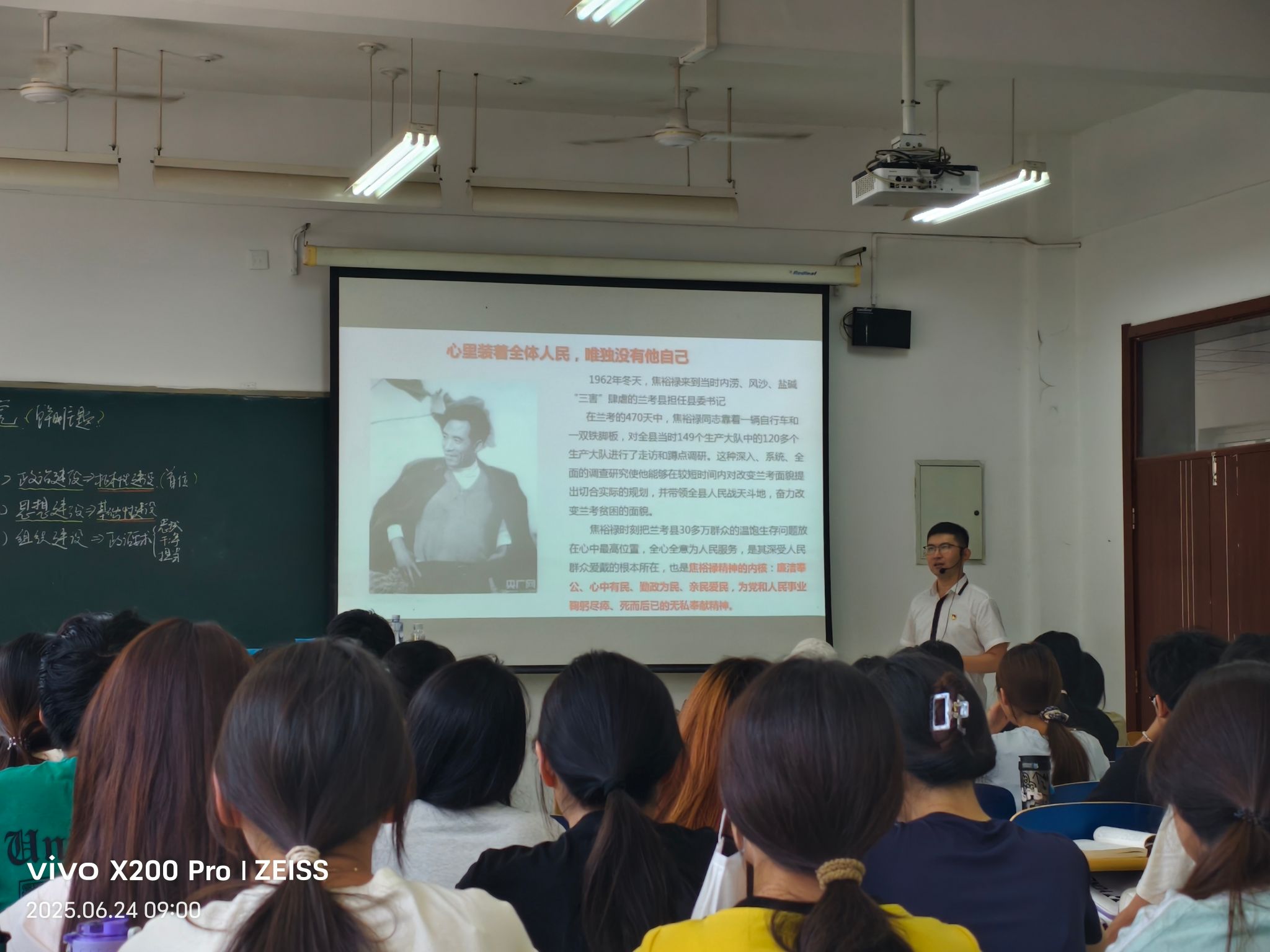 课上,尹君龙老师运用丰富案例,从清朝官员张伯行的《却赠檄文》阐述恪守清廉是为官底线,到新中国建设时期焦裕禄同志树立的精神丰碑,再到新时代脱贫攻坚中黄文秀同志的初心坚守,层层递进地解读了新时代党员干部必须明大德、严私德的要求。他指出,党员干部既要坚守立党为公、执政为民、无私奉献的价值追求和使命担当,也要恪守戒贪止欲、克己奉公的行为准则和信念操守。