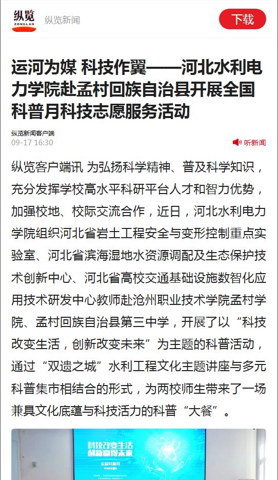 河北新闻网报道我校全国科普月科技志愿服务活动